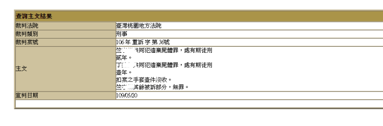 本所當事人遭起訴殺人及遺棄屍體罪,在本所辯護下,成功說服法官判決殺人部分無罪,遺棄屍體罪成立
