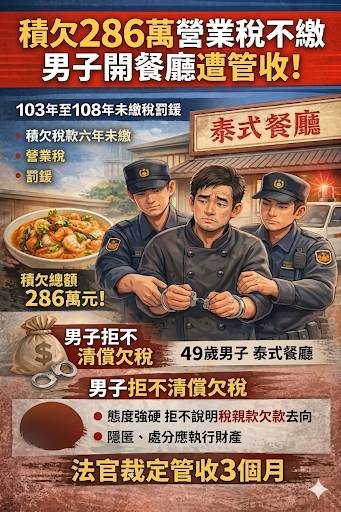 最近有則新聞:一名餐廳老闆積欠營業稅、罰鍰超過286萬元,結果遭法院裁定「管收」!