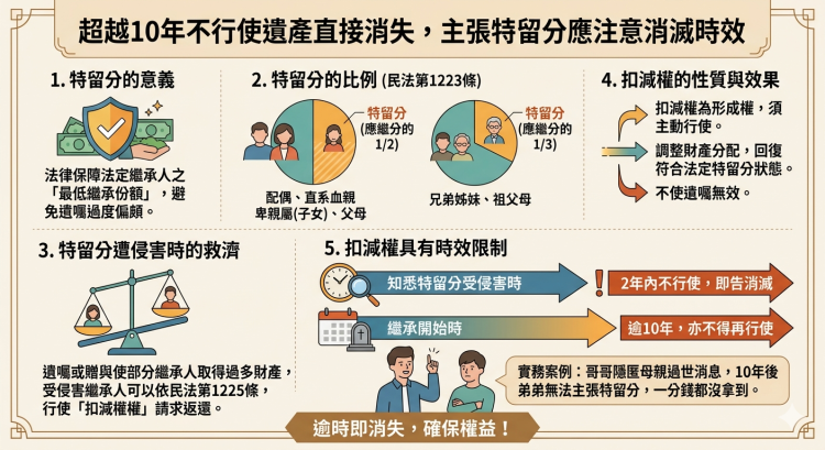過10年不行使,遺產特留分將消失!注意扣減權時效